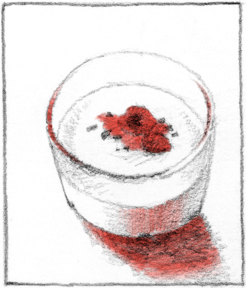 - Lisää täytteeksi mitä vain, reseptissä esimerkkitarjoiluna on vadelmia ja suklaarouhetta.