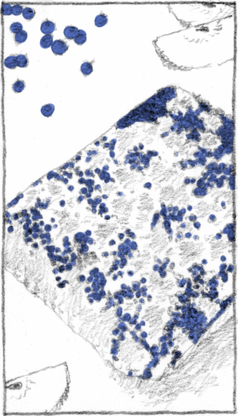 Taisin aloittaa kirjan tekemisen ennen gradututkielmaa ja lopulta tein sen kirjan kanssa samaan aikaan. Teksti ja kuvat tulivat aikalailla toistensa lomassa, vaihdellen tekstin kuvittamisesta kuvituksien auki kirjoittamiseen. Ehkä se piirtäminen oli kuitenkin luontevampaa kuin kirjoittaminen. Omia mielikuvia on helpompi ensin muuttaa kuviksi ja sitten sanoiksi.