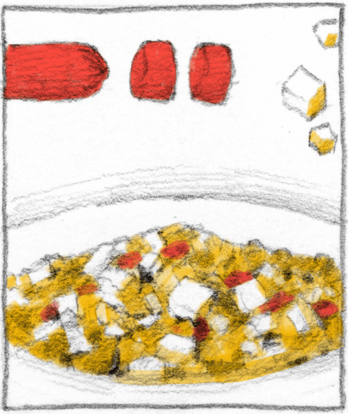 - Kääntele säännöllisesti kunnes perunat ovat saaneet ruskeutta pintaan. Tarjoile paistetun munan kanssa, joko erillisenä tai seassa.